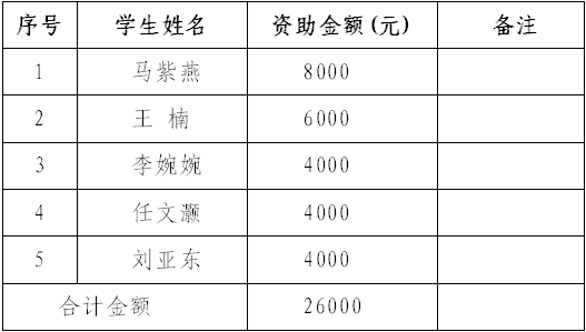 根據(jù)《張掖市慈善協(xié)會、甘肅省張掖中學(xué)、張掖市多成農(nóng)業(yè)有限公司關(guān)于開展第二屆“青衿助學(xué)”項目實施方案》,由張掖市多成農(nóng)業(yè)有限公司定向資助開展“青衿助學(xué)”活動。經(jīng)學(xué)生個人申請、張掖中學(xué)組織報名、“青衿助學(xué)”項目委員會入戶調(diào)查、市居民家庭經(jīng)濟狀況核對中心核對等程序,擬對馬紫燕等符合條件的5名貧困家庭大學(xué)生進行資助,現(xiàn)將資助學(xué)生名單及資助金額公示如下,公示期為2021年8月25日至8月27日,共3天。如需反映有關(guān)情況或意見,由市慈善協(xié)會統(tǒng)一受理。